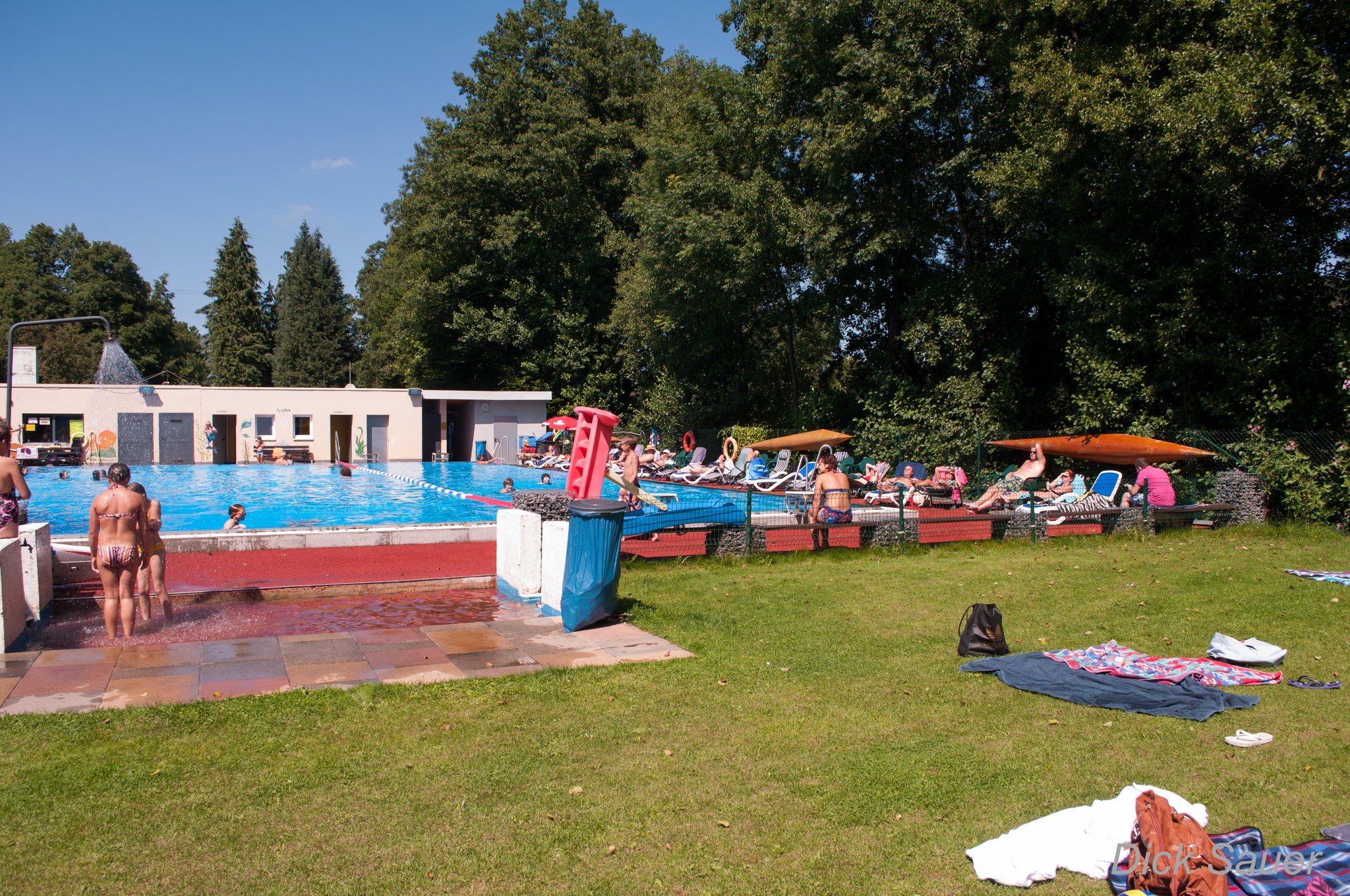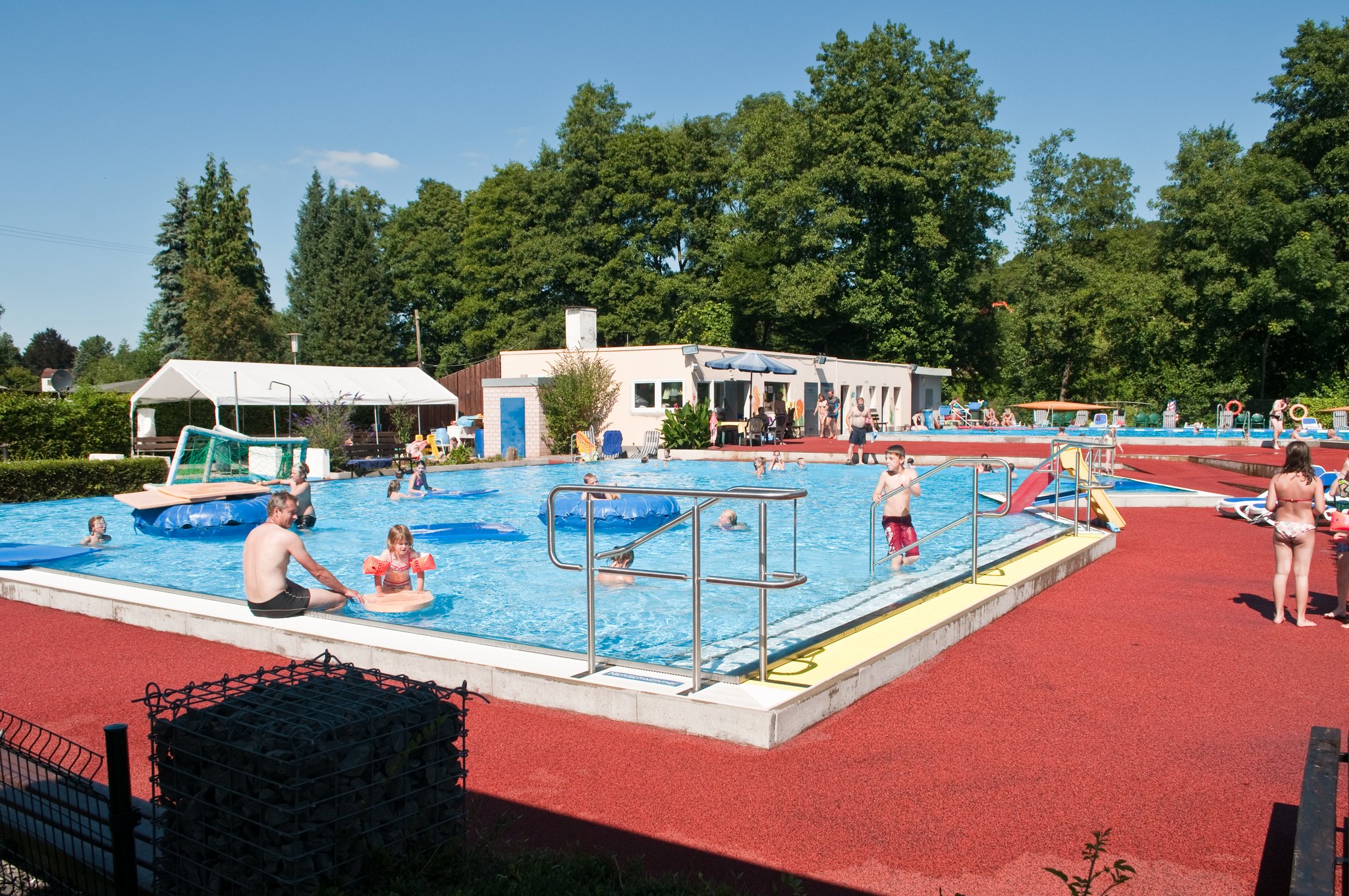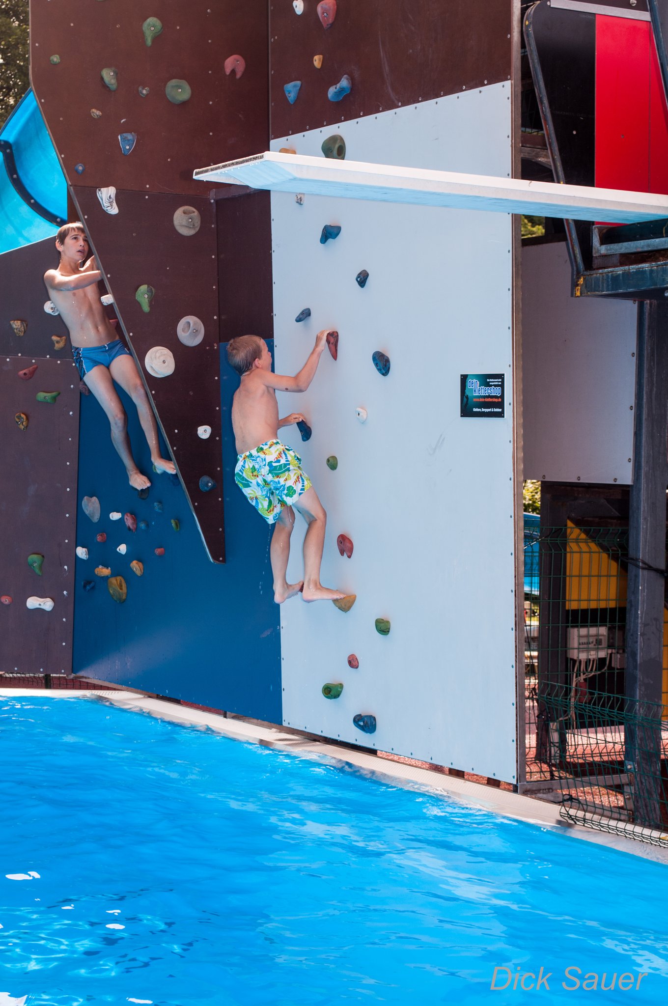 Es verfügt über einen Kinderbecken, Nichtschwimmerbecken, ein großes Schwimmbecken, Rutsche und Kletterwand.